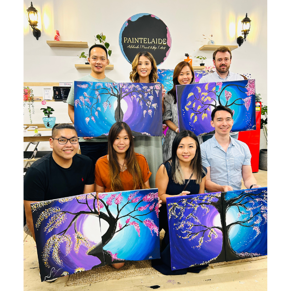 During this session, you and your partner will each paint on an individual canvas. The magic happens when the two canvases are placed side by side to reveal a single, flowing Tree of Love that connects across both frames. It is a stylish and modern way to celebrate your partnership, allowing you both to express your individual flair while creating a unified masterpiece for your home.