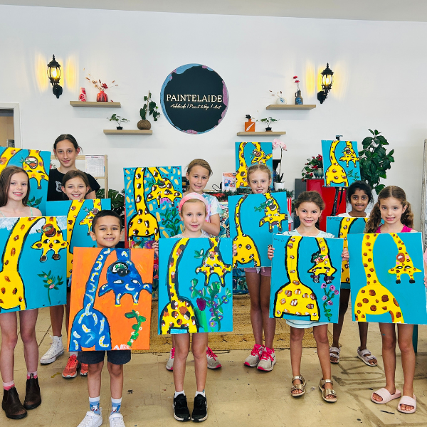 A super fun ART Lesson for your kids wherein they will paint the Goofy G (Giraffe) and take home their artwork to hang it in their room, with pride!